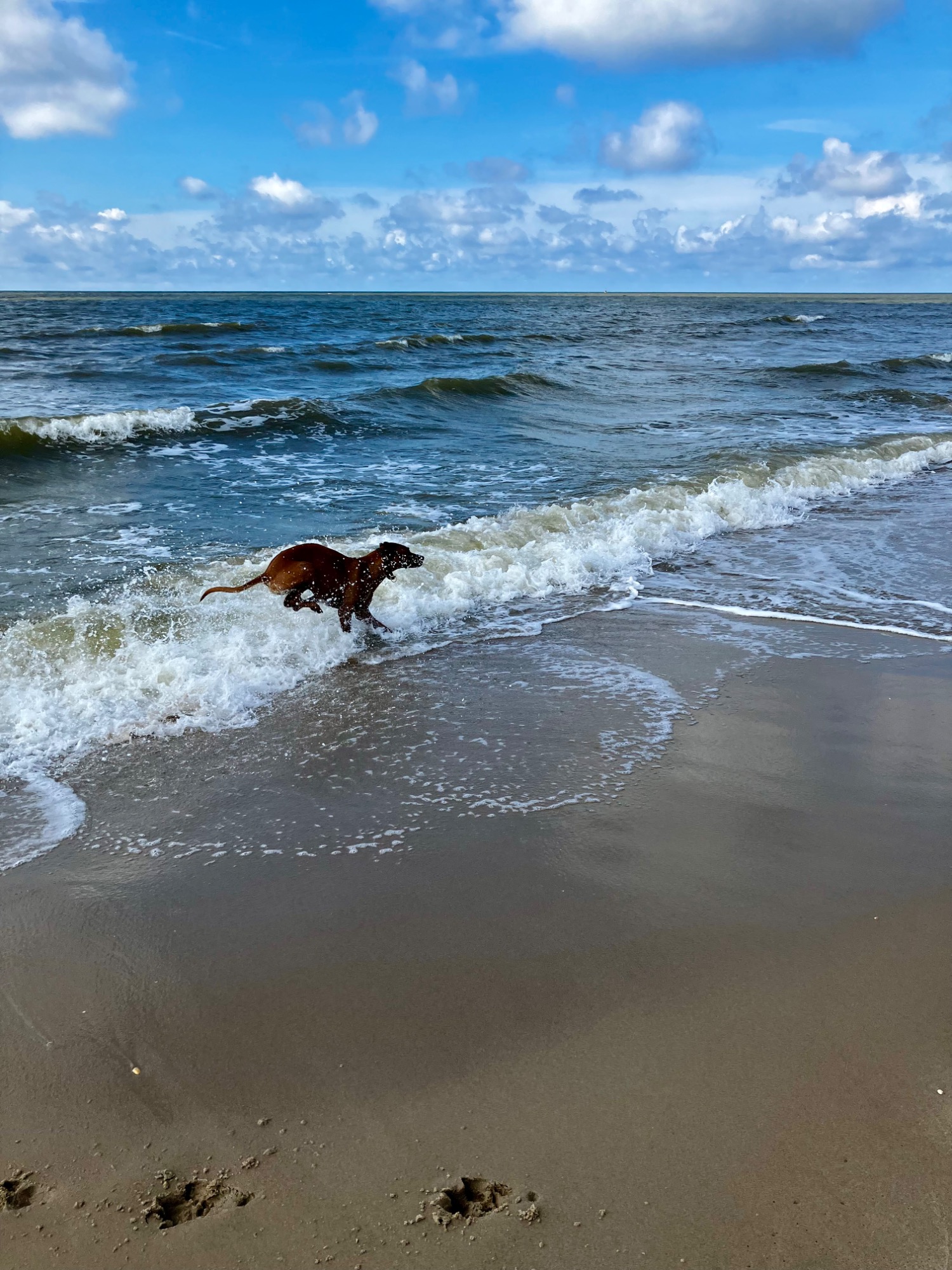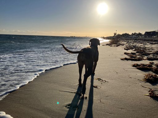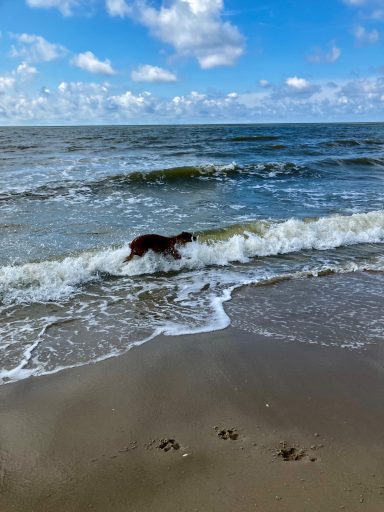 Sobald ich das Meer rieche, schalte ich in den „Turbo-Pfoten-Modus“. Meine Menschen sagen dann immer: „Da geht sie wieder…“ Ja, richtig. Da gehe ich. Und zwar ins Wasser. Schwimmen ist mein Ding. Ich bin quasi ein Seehund mit besseren Ohren.